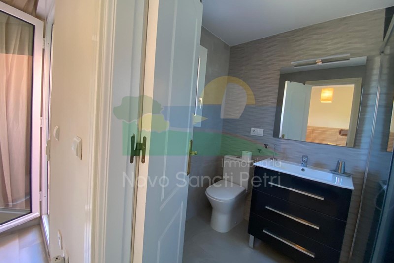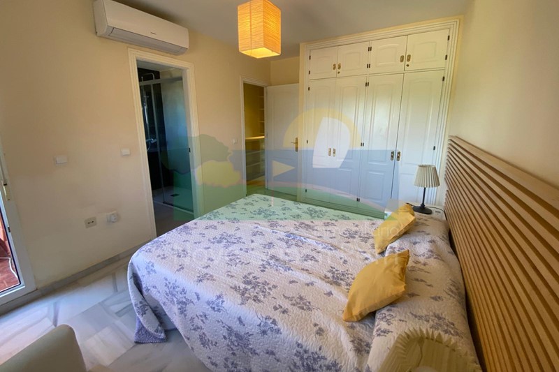 Se distribuye en hall de entrada, cocina independiente y patio tendedero, aseo, salón-comedor en doble altura, con salida al porche y jardín de uso privado, conectado con las zonas comunitarias; y en planta alta, un dormitorio principal en suite, con cama de matrimonio de 160cm y terraza con vistas al golf y al mar, 2 dormitorios dobles y un baño.