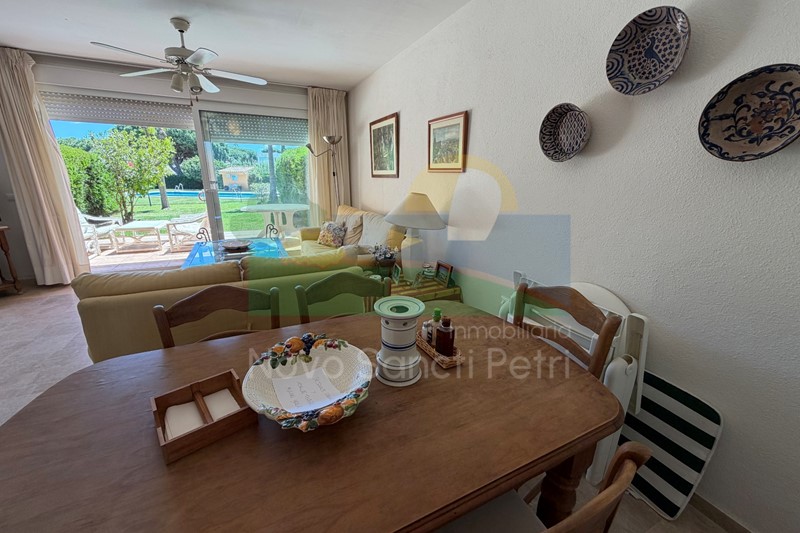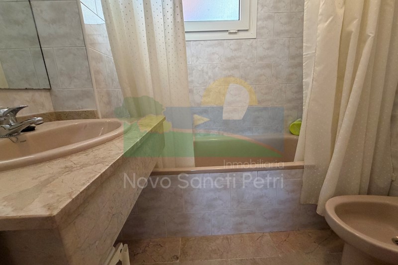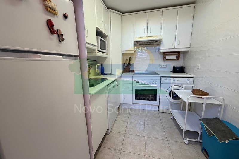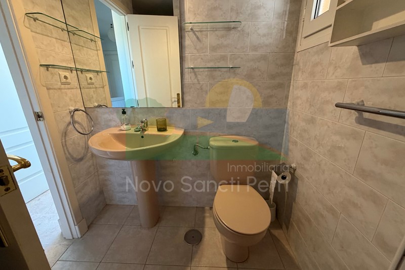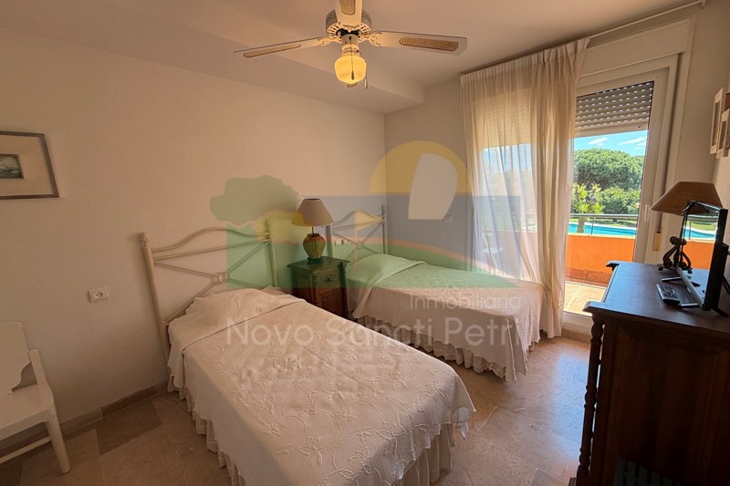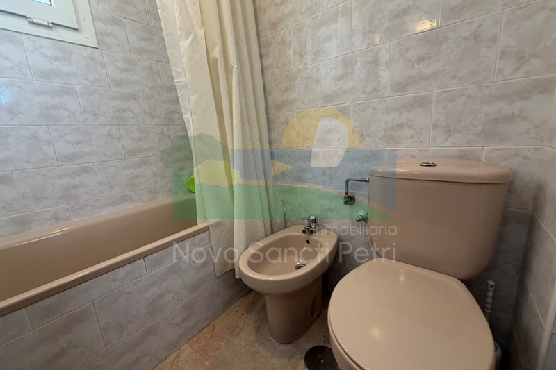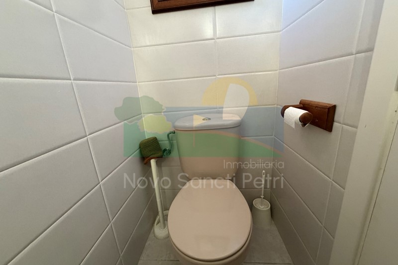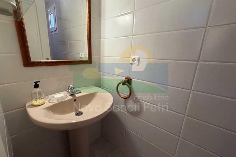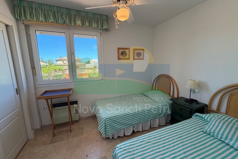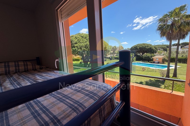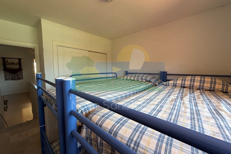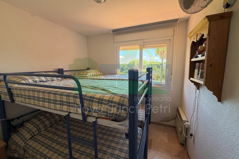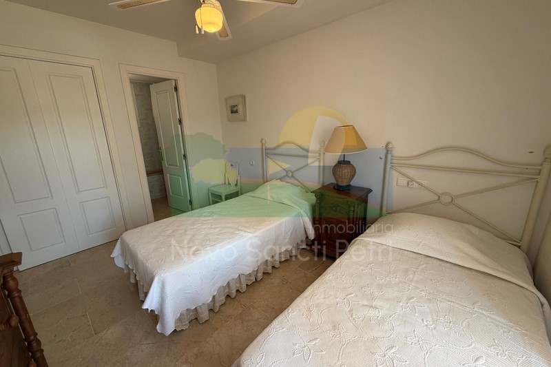 Se distribuye en hall de entrada, cocina independiente y patio tendedero, aseo, salón-comedor, con salida al porche y jardín de uso privado, conectado con las zonas comunitarias; y en planta alta, un dormitorio principal con dos camas de 90cm, en suite y terraza con vistas a la piscina, dormitorio doble, dormitorio con 2 literas y un baño.