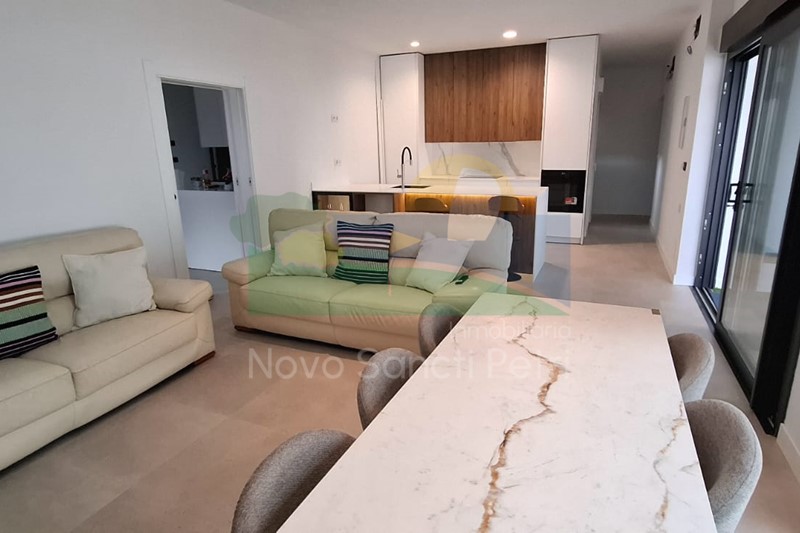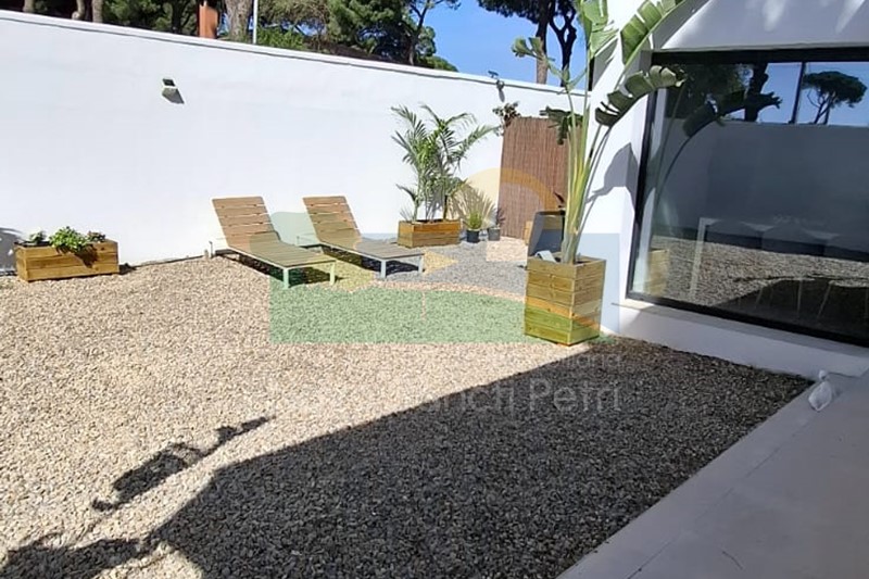 Se distribuye en hall de entrada, cocina americana abierta al salón-comedor, con acceso al porche y jardín privado. Cuenta con dormitorio principal en suite con cama de matrimonio de 180cm, dormitorio doble con cama de matrimonio de 150cm y una adicional de 90cm y un cuarto de baño completo.