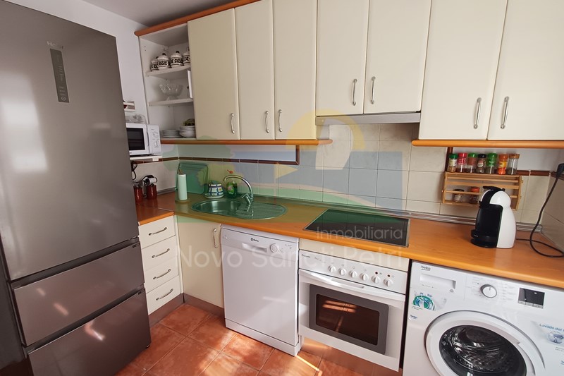 Se distribuye en hall de entrada, cocina independiente, patio tendedero, dormitorio doble con cama nido, baño, salón-comedor con salida tanto al porche principal (delantero) como trasero, conectado con las zonas comunitarias; y en planta alta, dormitorio principal con cama de matrimonio de 150cm, baño y terraza solárium.